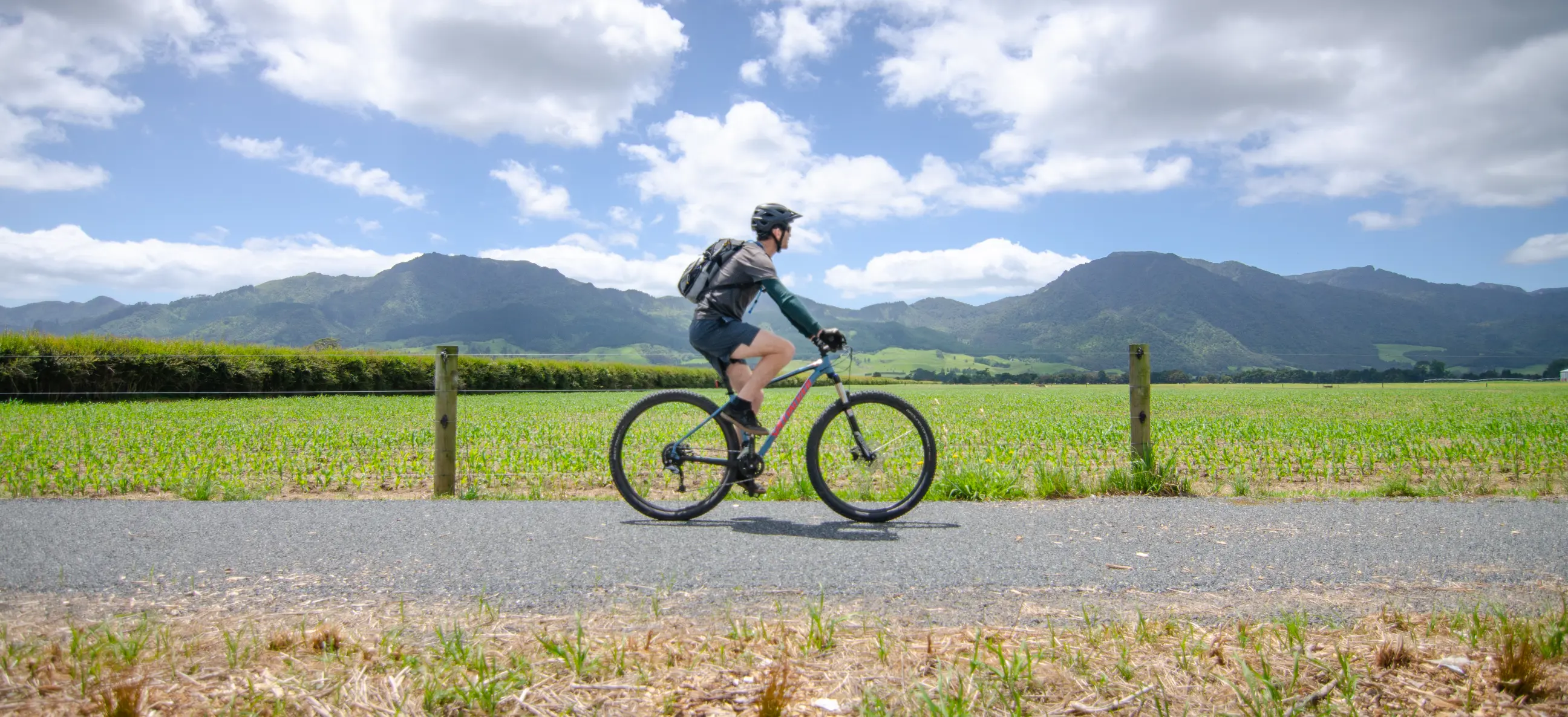 Paeroa to Te Aroha: 23 km, Grade 1 (Easiest), 2-3 hours - Perfect for a more leisurely ride, this section passes through lush Waikato farmland with views of the Kaimai-Mamaku Ranges, Mt Te Aroha and Hauraki Plains. Choose to start or finish in the historic spa town of Te Aroha, explore the lovely domain and art and refuel in one of the cafes. Why not finish a day of riding having a relaxing soak at the mineral spa.