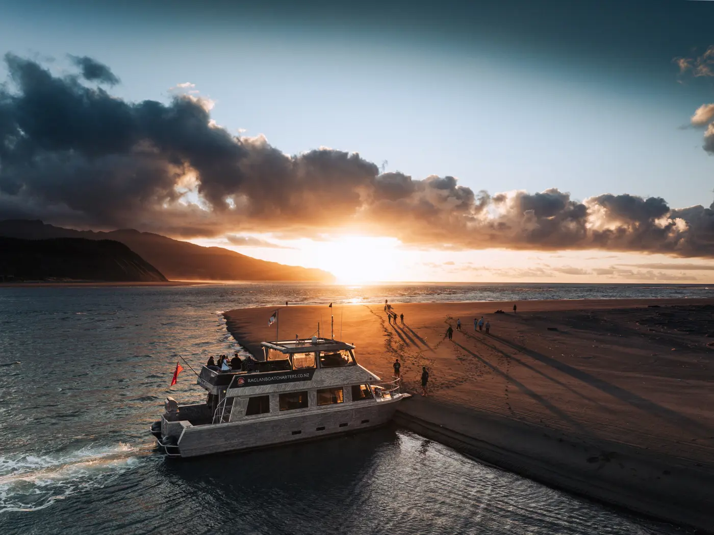 End the day on the water with Raglan Boat Charters - a peaceful sunset cruise across the harbour as the sky turns peach and gold. Enjoy classic fish and chips from the wharf as you drift beneath the fading light, soaking in Raglan’s effortless coastal charm.