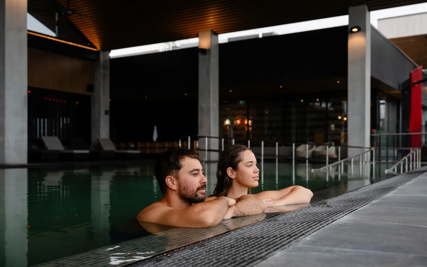 Unwind at Wai Ariki Spa to finish the day with an evening soak inspired by Māori healing traditions, surrounded by steam and serenity.