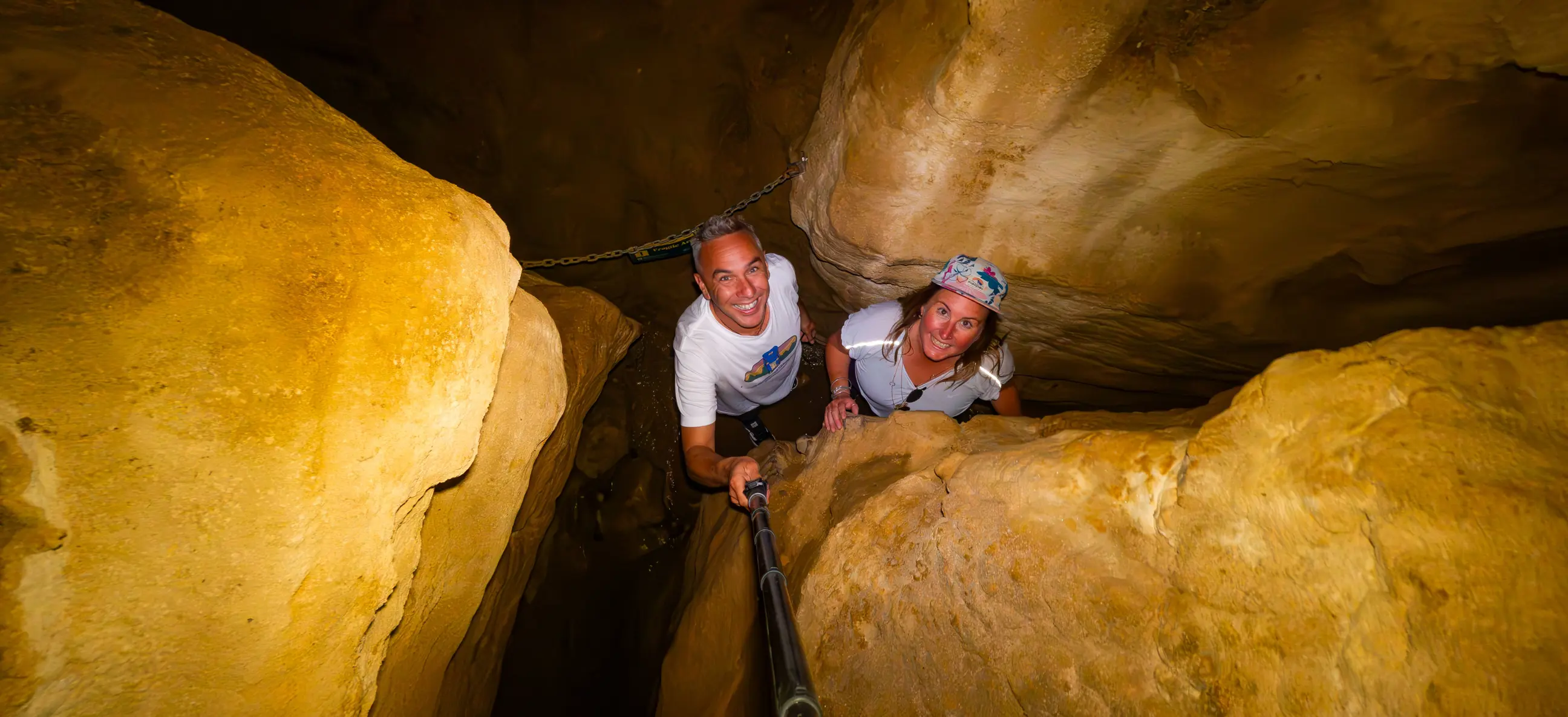 This walk offers the excitement of entering two small caves - the main 20m cave which you can walk through except for a short crawl section, and the smaller cave which is tight and narrow. Don't forget to take a torch.